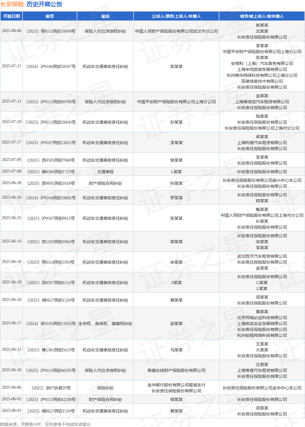 本站消息,根据天眼查APP显示,近日公布了一则长安责任保险股份有限公司作为被告/被上诉人的开庭公告,详细内容如下: